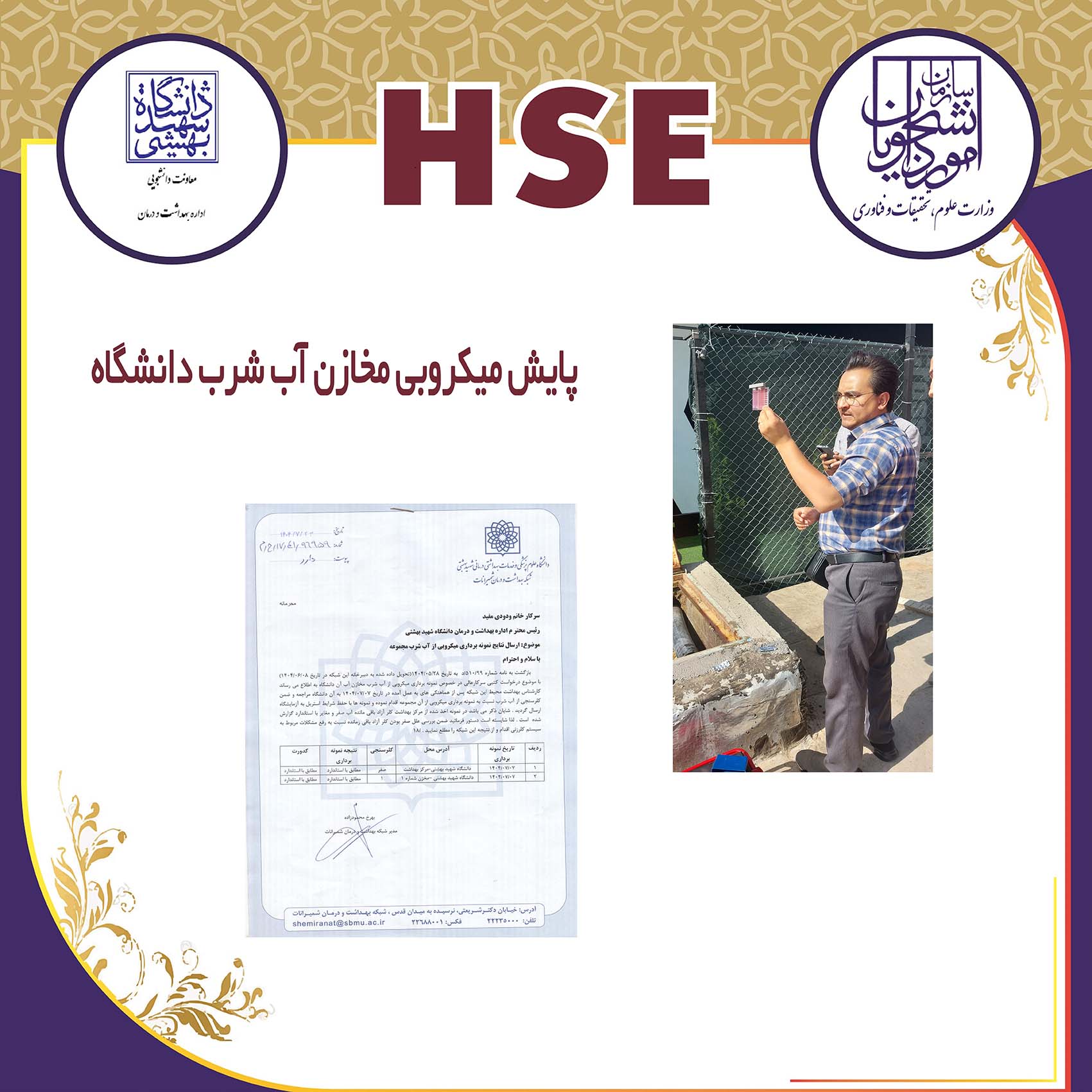 ارائه پوستر اقدامات اداره بهداشت و درمان در حوزه سلامت، ایمنی و محیط زیست (HSE) در نهمین نمایشگاه پدافند غیرعامل سال 1404،  غرفه وزارت عتف