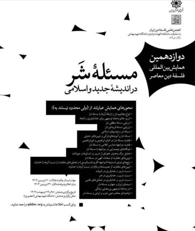 برگزاری دوازدهمین همایش بین المللی فلسفه دین معاصر، مسئله شر در اندیشه جدید و اسلامی۲۵و۲۶ اردیبهشت