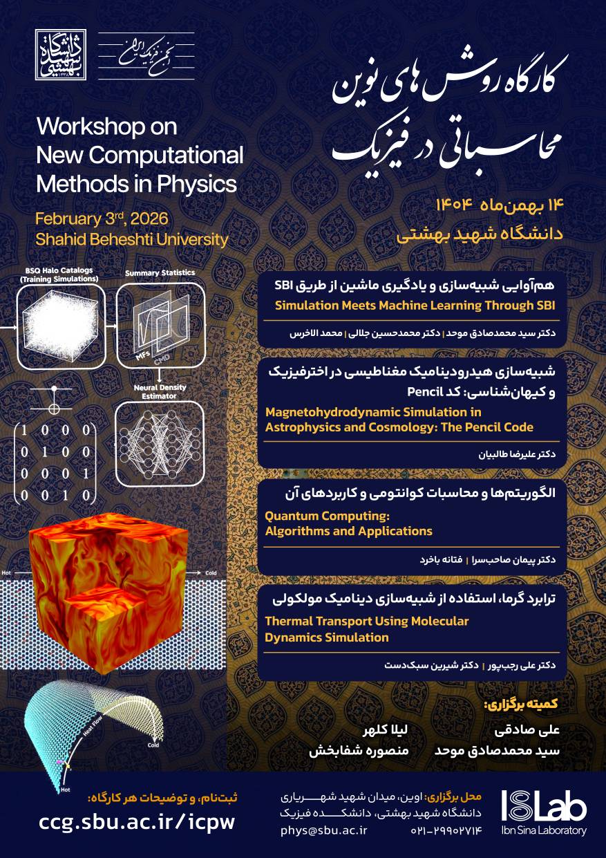 🔹 این کارگاه با هدف معرفی رویکردهای مدرن محاسباتی در فیزیک—از یادگیری ماشین تا محاسبات کوانتومی و شبیه‌سازی‌های عددی پیشرفته—برگزار می‌شود.